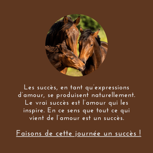 Aujourd’hui lors de la séance avec le cheval, mes yeux, mes mains, ma posture auront un seul but : être voués à mon allié pour le combler de succès. Je donne à mon allié tout ce qui est à moi et servira le mieux le but de réussir